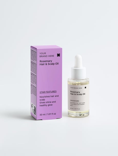 Améliorez votre offre de soins capillaires avec notre huile fortifiante pour cheveux et cuir chevelu au romarin, une solution naturelle pour nourrir le cuir chevelu et redonner de la vigueur aux cheveux. Elle est idéale pour les marques qui cherchent à répondre à la demande croissante de produits de soins capillaires nourrissants et redonnant de l'éclat aux cheveux.